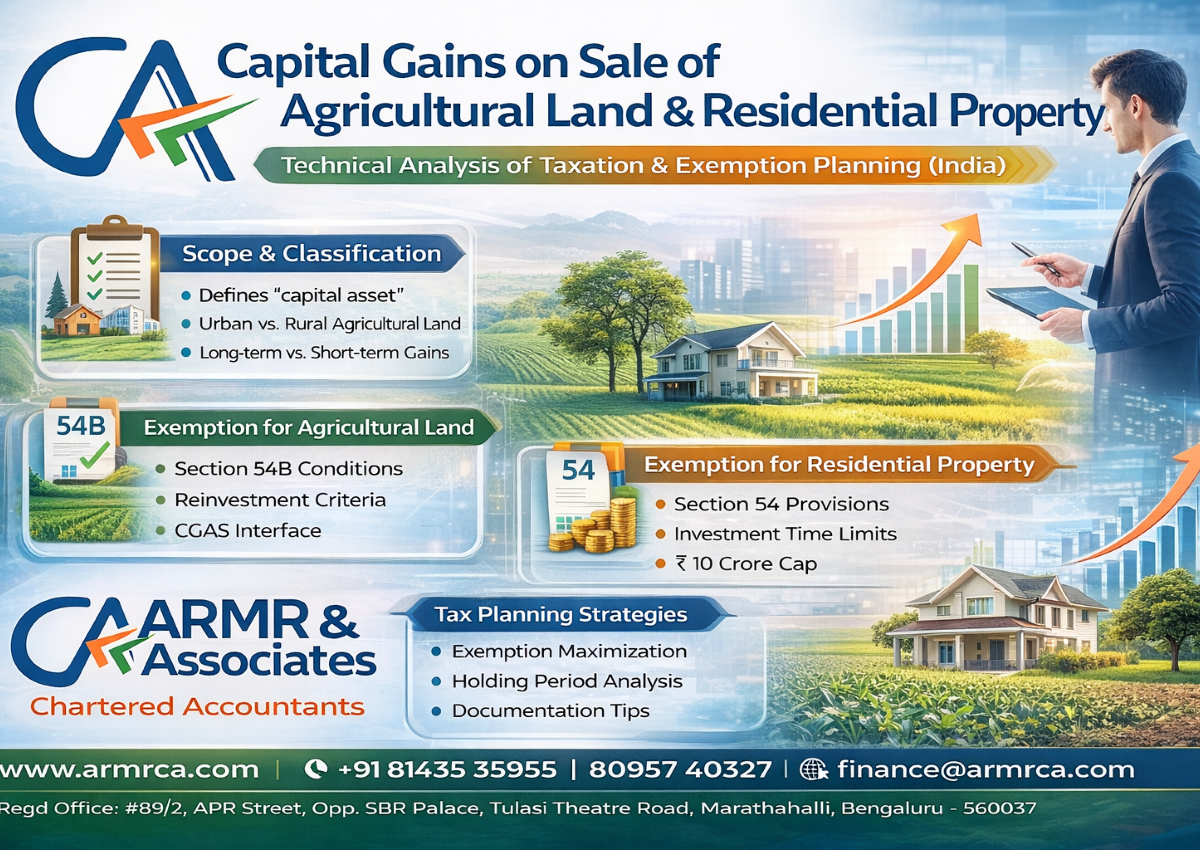 For engagement on a specific transaction or to obtain a detailed capital gains working and exemption plan for an upcoming sale, clients may reach A R M R & Associates through www.armrca.com or contact the Bangalore office for a consultation.